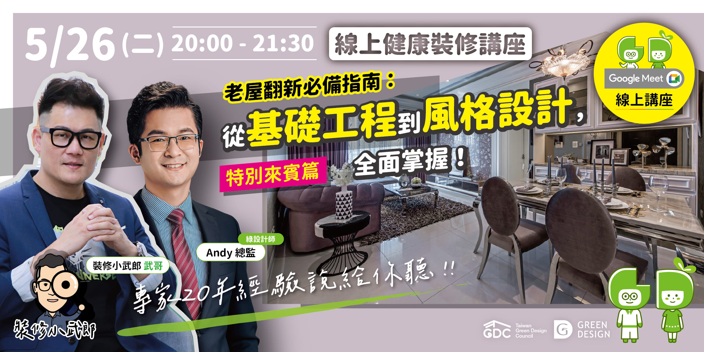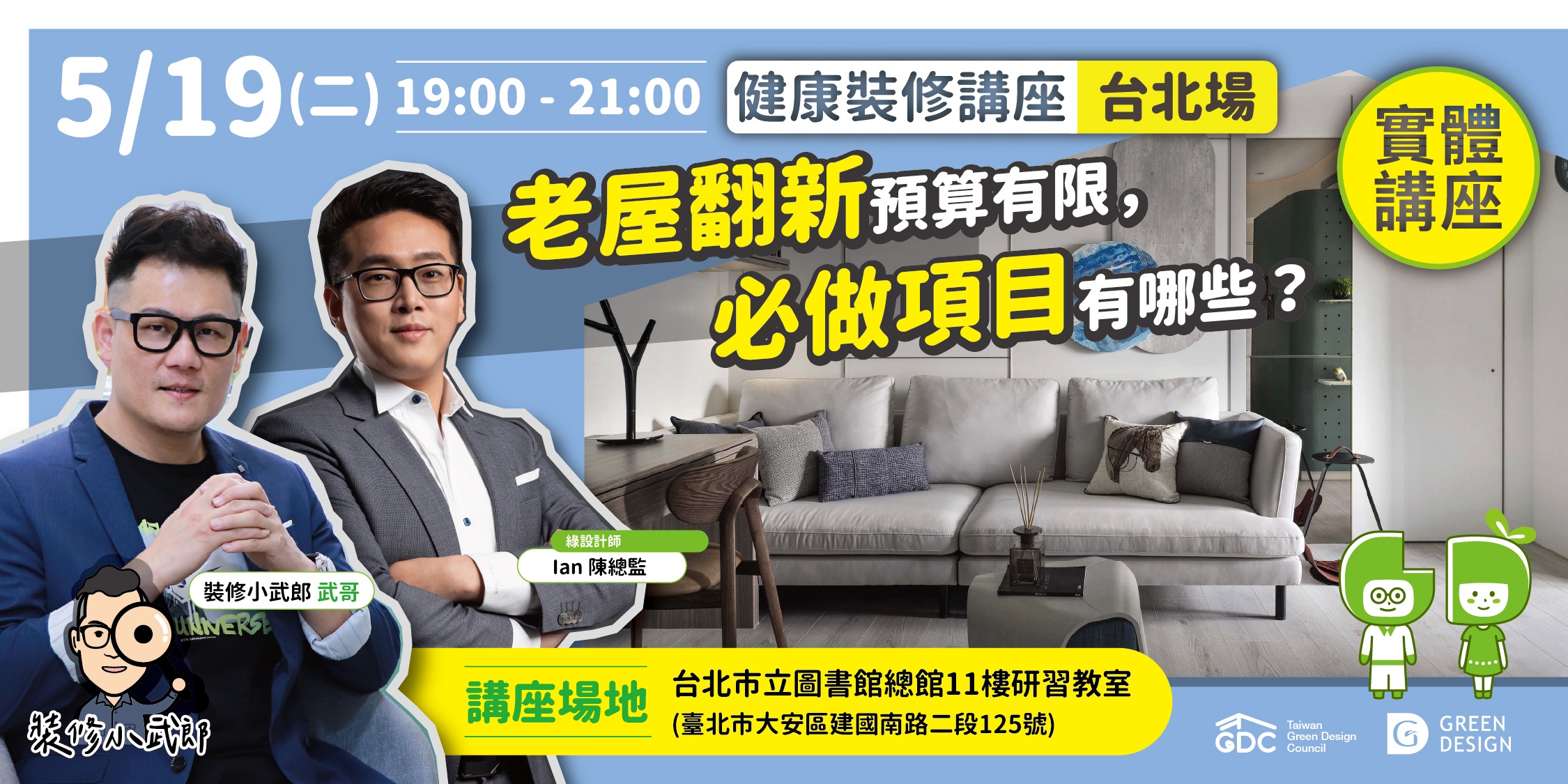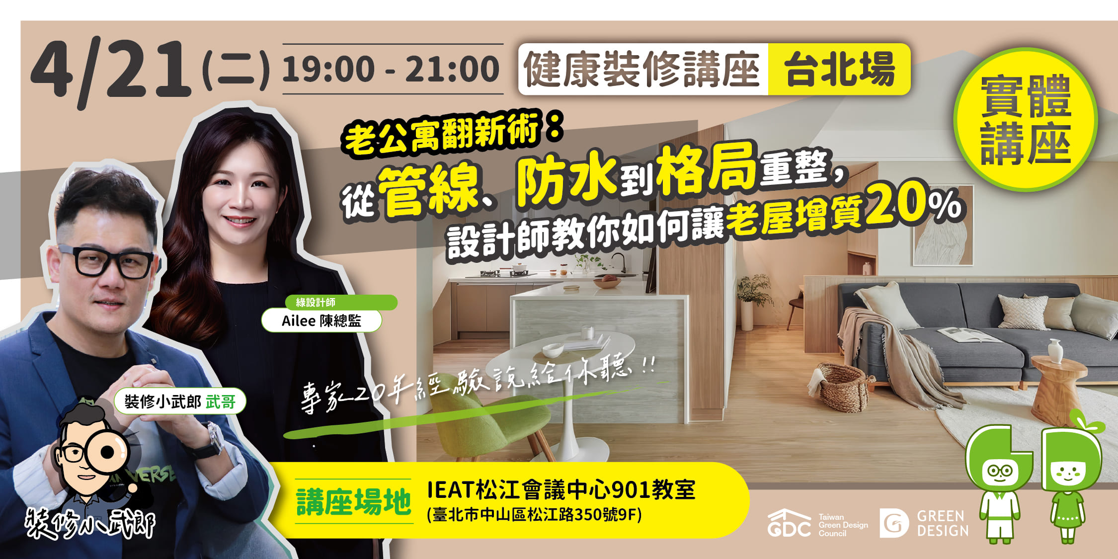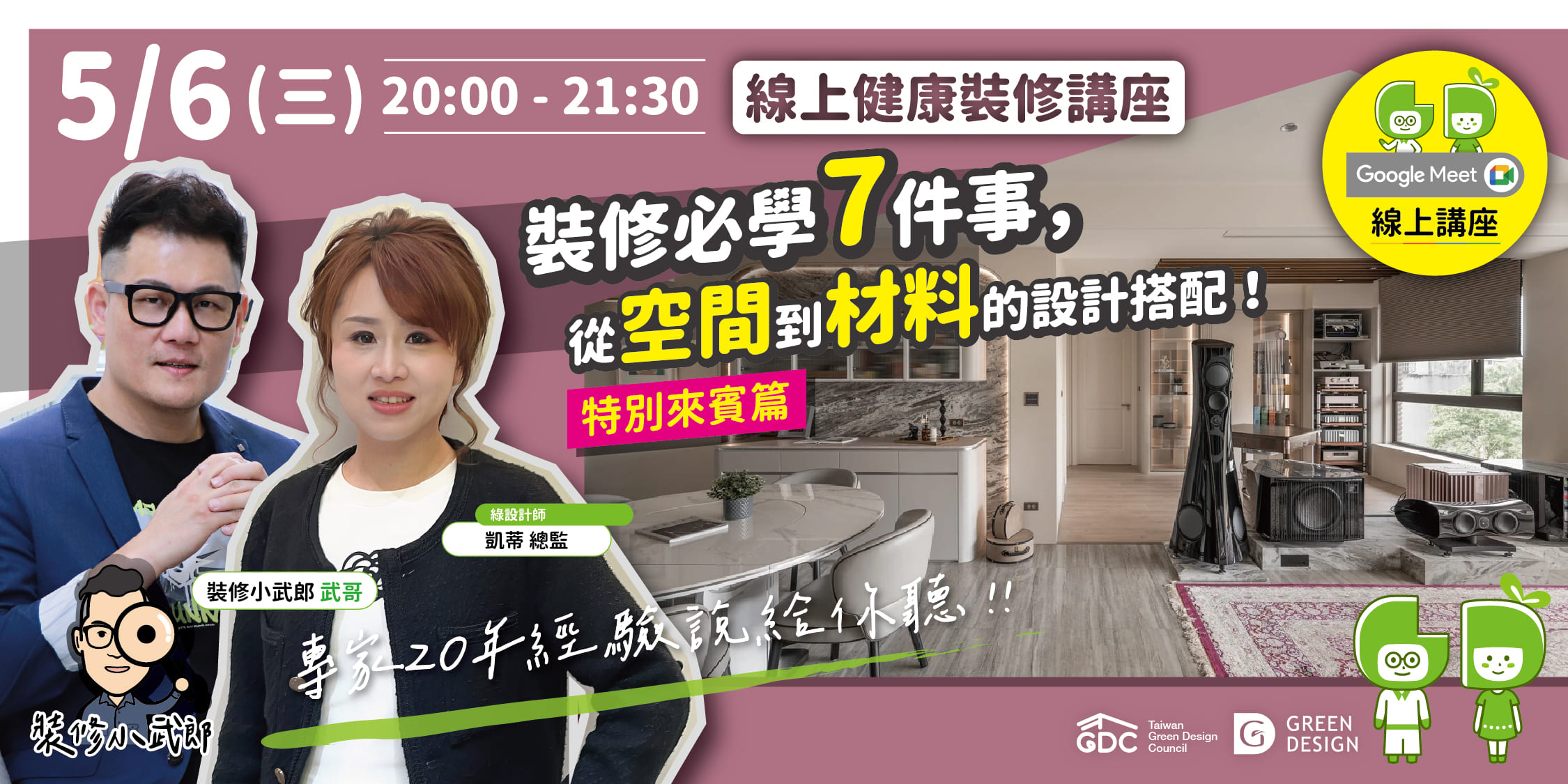 【GD健康裝修系列講堂】第259場—《特別來賓篇》裝修必學7件事,從空間到材料的設計搭配!