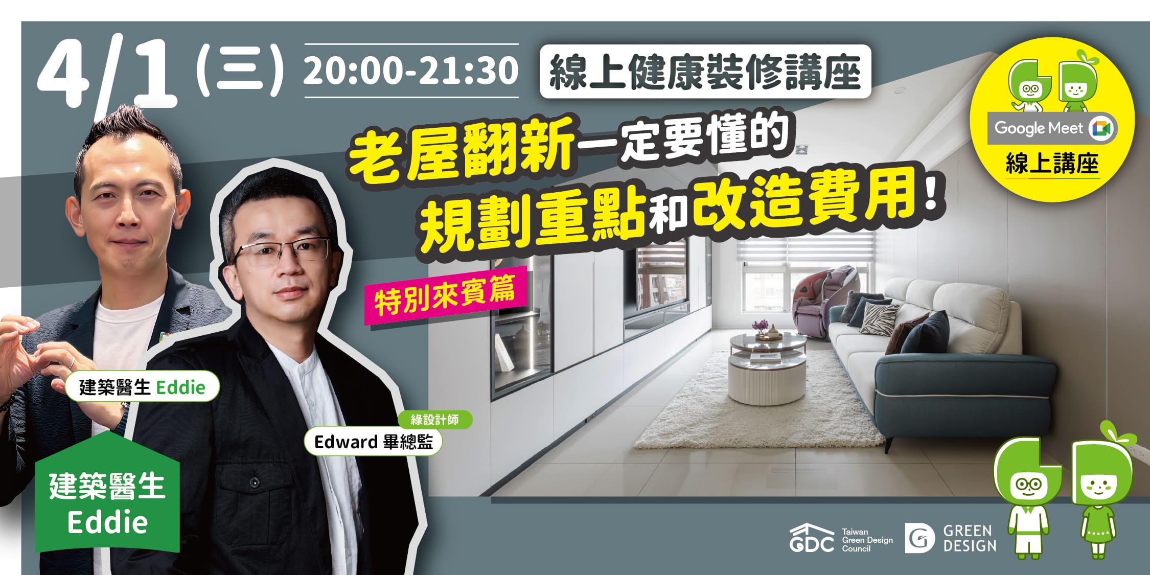 【GD健康裝修系列講堂】第266場—老公寓翻新術:從管線、防水到格局重整,設計師教你如何讓老屋增值 20%