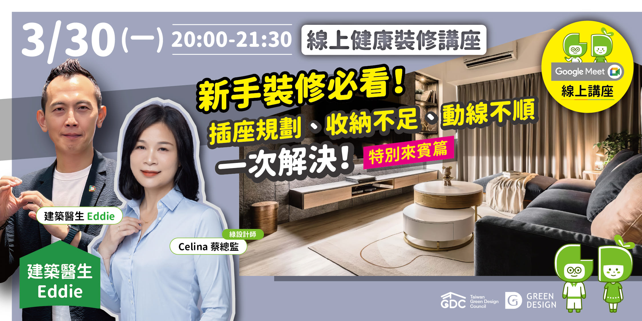 【GD健康裝修系列講堂】第250場—《特別來賓篇》新手裝修必看!插座規劃、收納不足、動線不順一次解決
