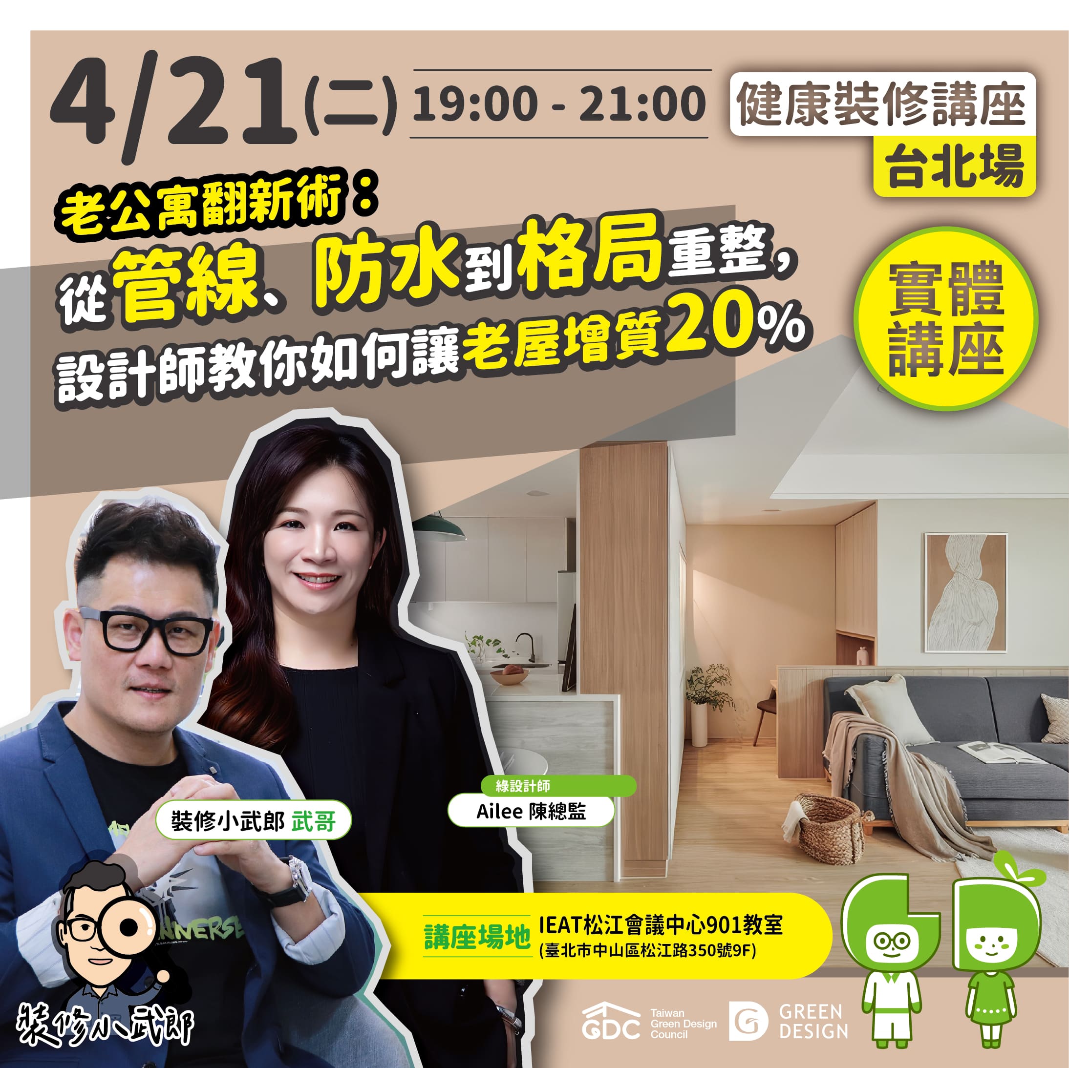 【GD健康裝修系列講堂】第255場—老公寓翻新術:從管線、防水到格局重整,設計師教你如何讓老屋增質20%